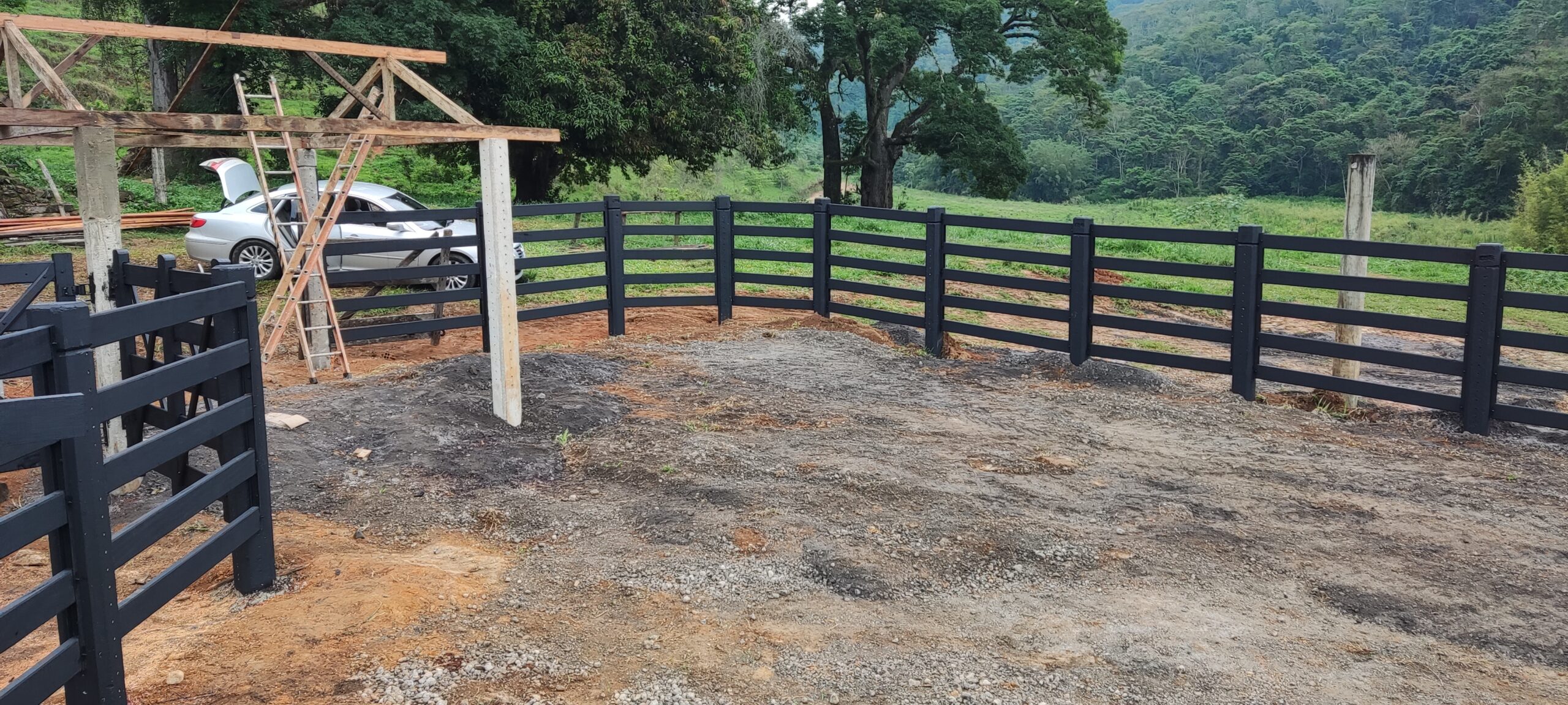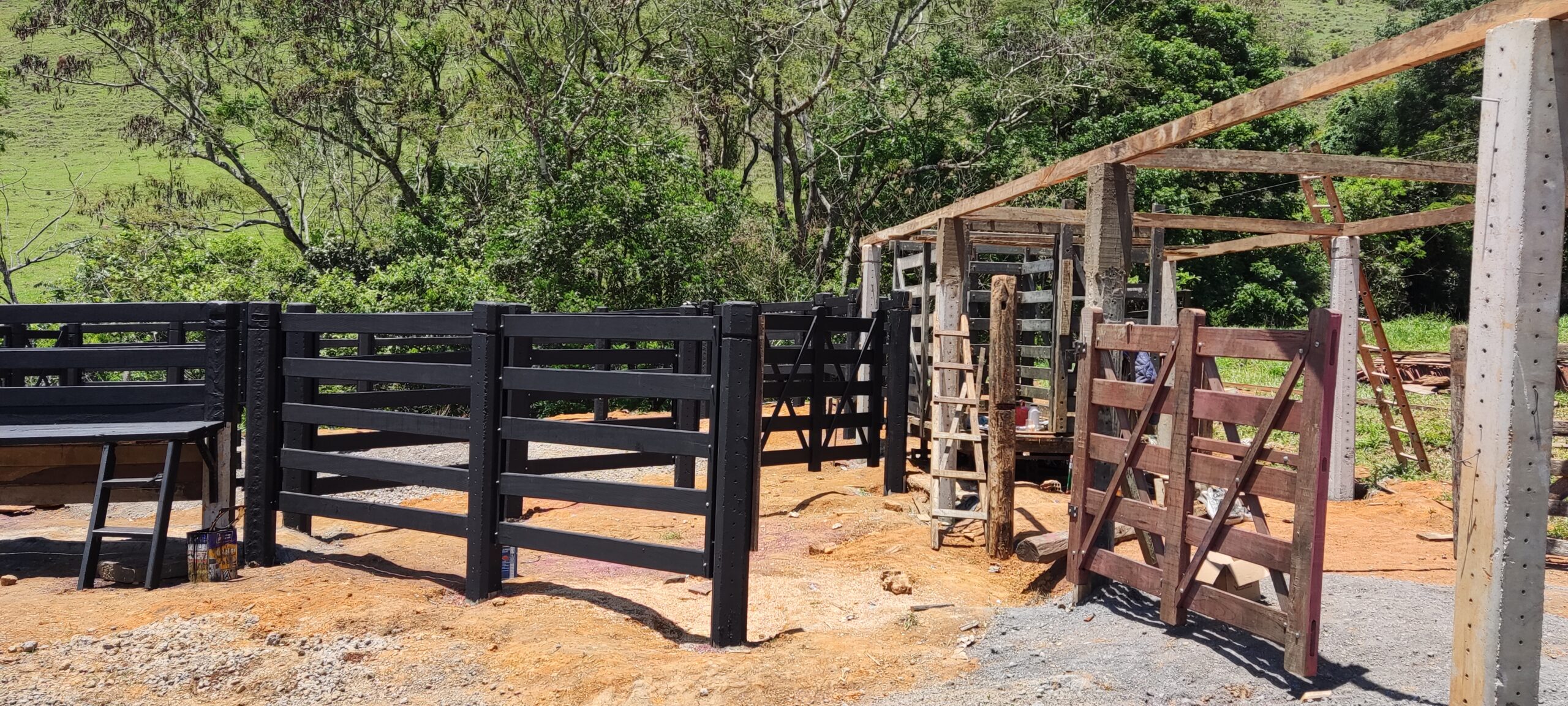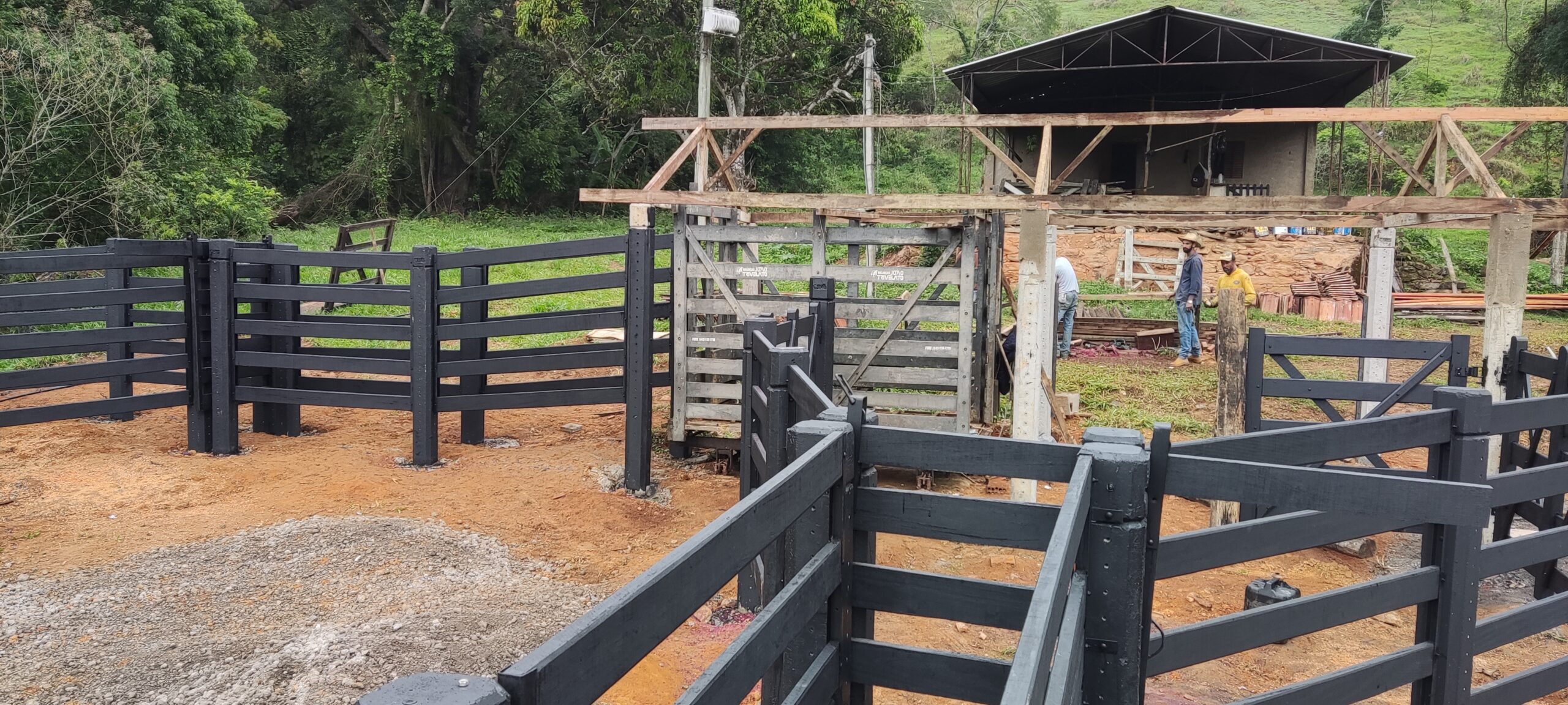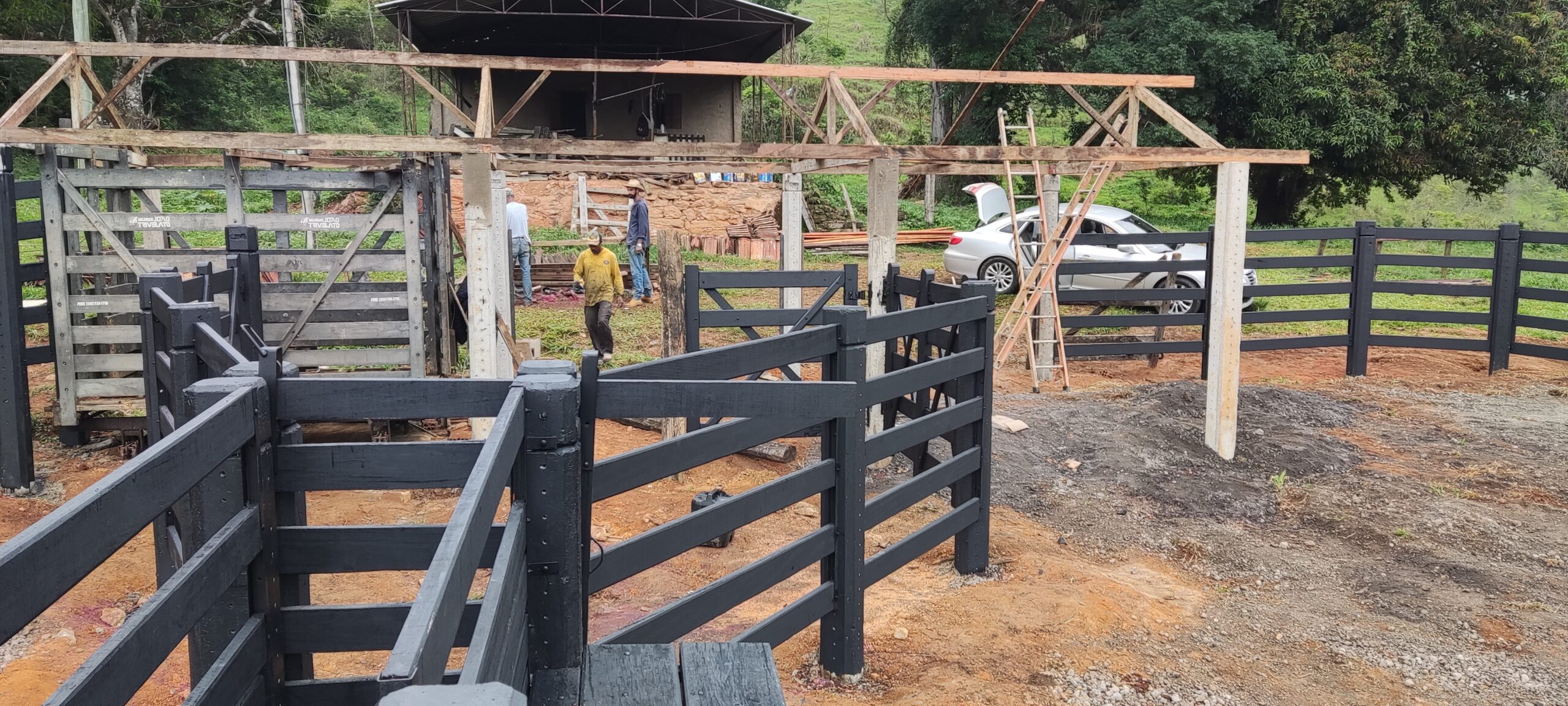 Curral adaptado para um cliente. Foi removido o curral velho, mantido o local da balança e a área de trabalho. Com duas opções de apartação, foi um curral para embarque e desembarque do gado em área de melhor acesso.